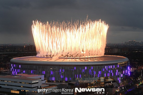 손흥민(28, 토트넘 핫스퍼)이 홈 구장 토트넘 핫스퍼 스타디움 지붕에 올랐다.